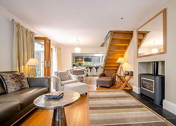 - Wood burner in open-plan lounge