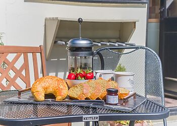 - Enclosed sun-trap garden with dining